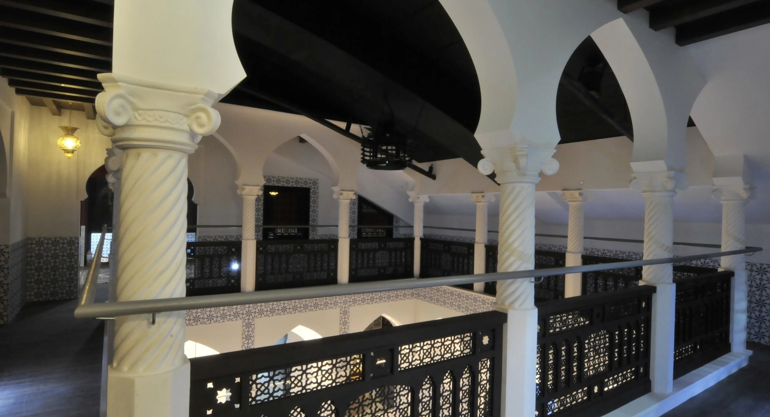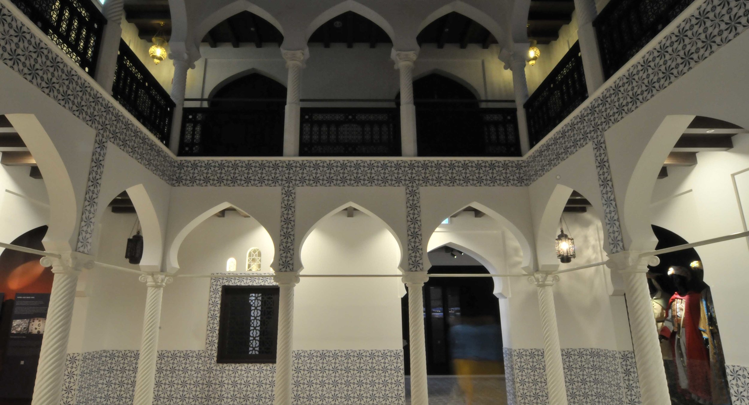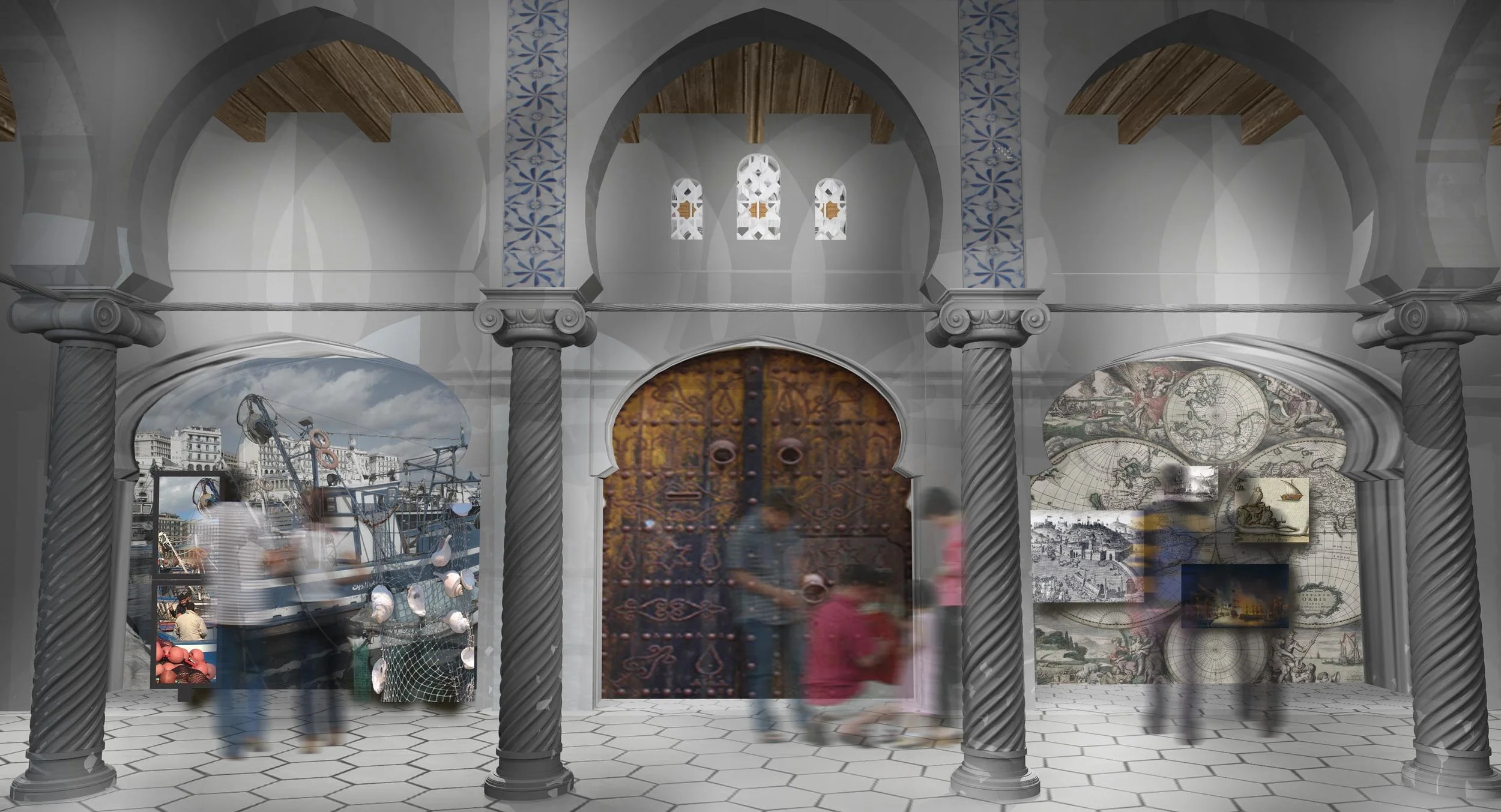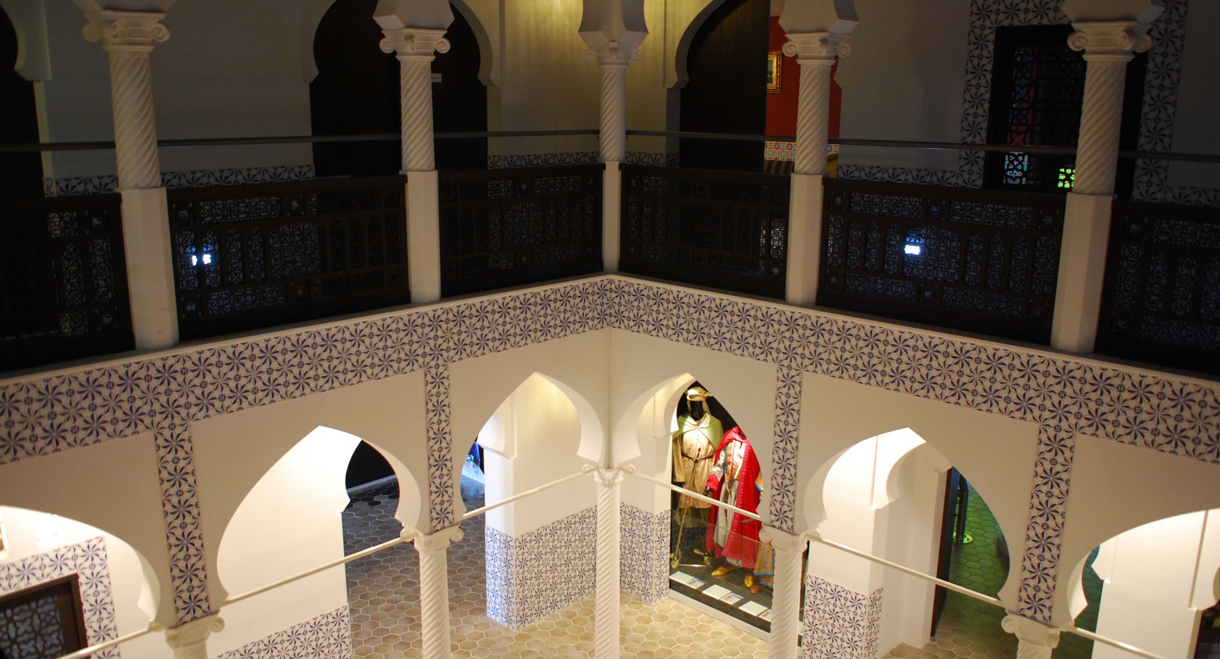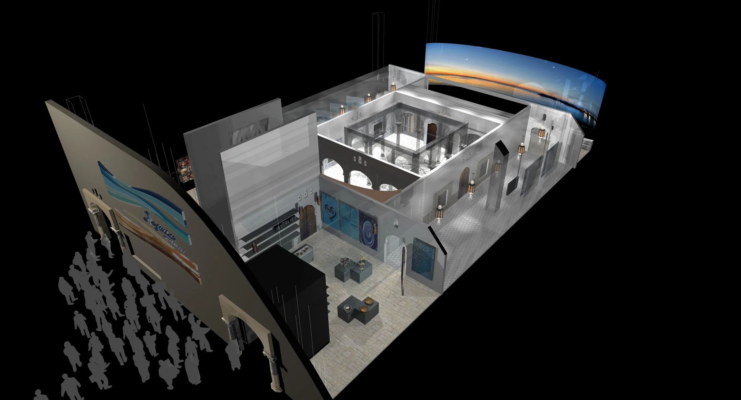 Algeria possesses a rich culture and a unique geographic position, wedged between 2 seas - one of water in the North and one of sand in the South. The scenography invited the visitors into „Le Centre des arts et de la Culture du Palais des Rais“, a national monument in Algiers, from where one could wander through various spaces that exhibited themes of economy, tradition and history. The main show could be seen from an outdoor terrace view, presenting a panoramic film experience.